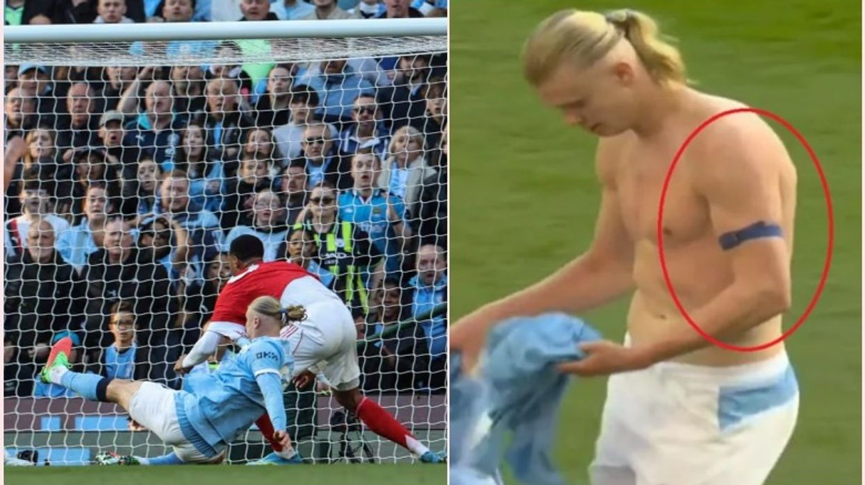 Haaland u detyrua të largohej për pak çaste nga fusha për të ndërruar uniformën, dhe pikërisht atëherë u pa duke mbajtur një pajisje të vogël në pjesën e sipërme të krahut.