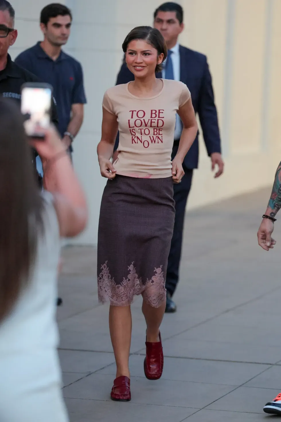 Zendaya u shfaq në Los Angeles gjatë promovimit të filmit The Drama, me një fund vintage me dantellë nga Louis Vuitton. Aktorja e kombinoi me bluzë grafike dhe aksesorë klasikë, duke forcuar edhe më shumë trendin e fundeve me dantellë.