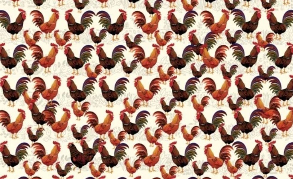 Në foto paraqiten disa gjela, mes të cilëve është fshehur një pulë që vështirë dallohet në shikim të parë.
