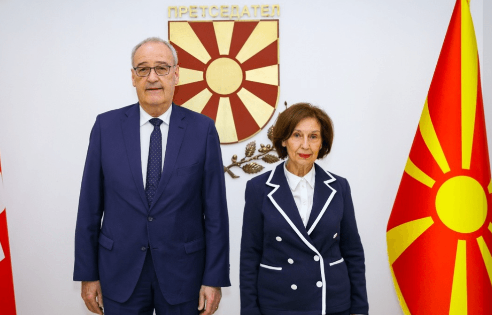 Presidentin zviceran Guy Parmelin po qëndron për vizitë zyrtare në Maqedoninë e Veriut. Ai u prit me nderime të larta shtetërore dhe ushtarake nga presidentja Gordana Siljanovska-Davkova.